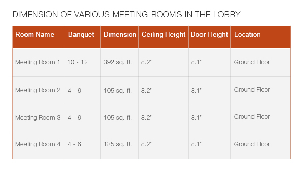 There are also four breakout meeting rooms available at the Lobby which all excellent options for corporate meetings.  Our dedicated Conference and Banqueting Team can help create the most elaborate occasion for your event at the location of your choice.  They will meet all of your audio visual requests from our complete components menu, LCD or Overhead Projectors.
